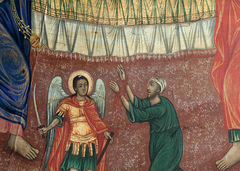 Mary begins to speak proclaiming she does not know the hour of her departure but it will be soon. She then describes the death process for people and speaks of how two angels will come to a person, one of righteousness and one of wickedness, and those two will come with death. This is the process that she describes: Death will come to the body and if the person has done righteous and good deed, the angel of righteousness will rejoice as finding no sin on the person. That angel will call upon other angels to the soul and they all sing upon it until the soul reaches the place of all righteous. This will cause the angel of wickedness to weep. However, if the person was an evil doer, then this angel of wickedness (who is also referred to as Satan in the Georgian version) will call upon other evil spirits who will then tear the soul apart. Kind of reminds me of the Cenobites from the Clive Barker Hellraiser mythos! LOL