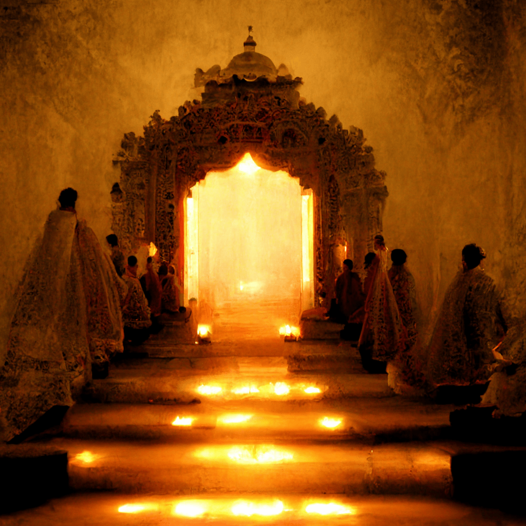 I highly enjoy Daniel’s translations, and recommend you all check out his site. Above you can see the artwork that the MidJourney bot outputted. It has a sort of ancient temple “bridal chamber” look, in a literal sense. Now granted the bridal chamber in the religious context is the relationship between oneself and the divine, but I did like what it created. It has that dream-like quality to it, an inviting aspect to it that pulls in the observer.