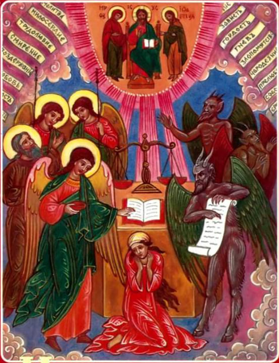 The Gospel of Mary is probably the most famous non-Nag Hammadi library text out there. Despite it not being complete, an interesting teaching arises from this text. I am going to solely focus on the toll houses presented in this story. If you did not catch my previous blog entry about toll houses (click HERE), this concept is that after death, the soul, usually along with it’s guardian angel, stops at various “toll houses” to confront a demon and the soul is then judged. The featured icon I have for this post illustrates a “literal” scene of this concept however this should be viewed as a metaphor of spiritual warfare that we face throughout life. The toll houses feature a demon that represents a sin of the world. This is very well illustrated in the Gospel of Mary.