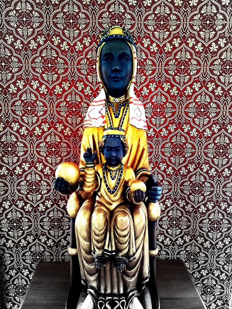 I mentioned before about my visits to the Saint Meinrad Archabbey and encountering the Lady of Einsiedeln. Well, with the school out of session for the summer, I’ve been exploring more of the monastery and first off, there is a second statue of Einsiedeln at the entrance to another chapel on the grounds. This copy …