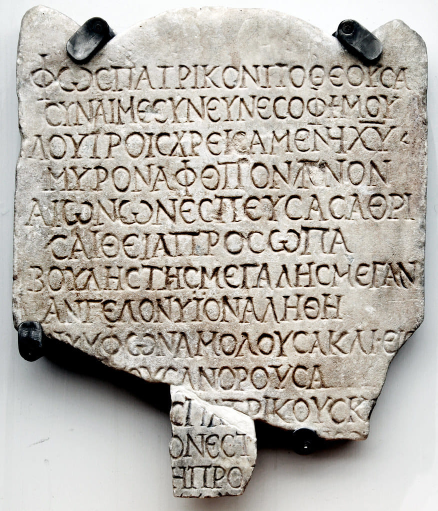 This artifact is an interesting piece. It is a tomb inscription of a woman by the name of Flavia Sophe. This stone dates back to the third century and what is written by her husband, is quite beautiful. A really good example of Valentinian poetry. There is writing on the front and back of the …
